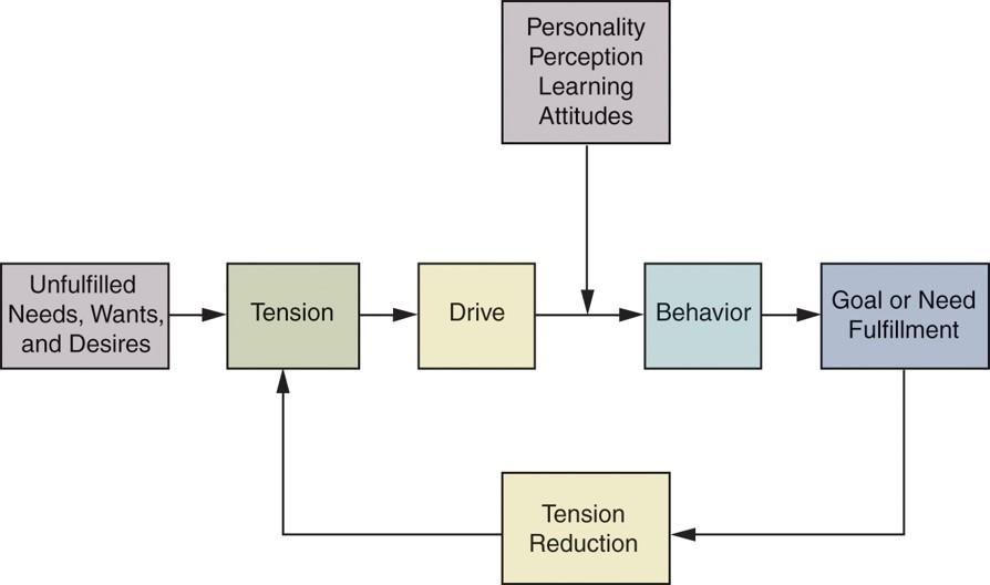 - الحاجات غير الملباة Unsatisfied Needs: تبدأ العملية بعدم إشباع الحاجة أو الرغبة، مما يخلق حالة من التوتر أو عدم الراحة داخل الفرد. يمكن أن يكون هذا التوتر جسديًا (الجوع والعطش) أو نفسيًا (عدم الاعتراف والرغبة في الإنجاز).